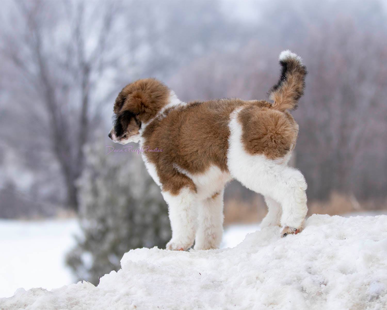 This litters due date was 12/24/20. Dahlia went into labor on Christmas Eve and gave us 4 beautiful presents on Christmas! We have 3 boys and one girl. There names are Frosty, Tinsel, Noel and Kringle. Scroll for pics.