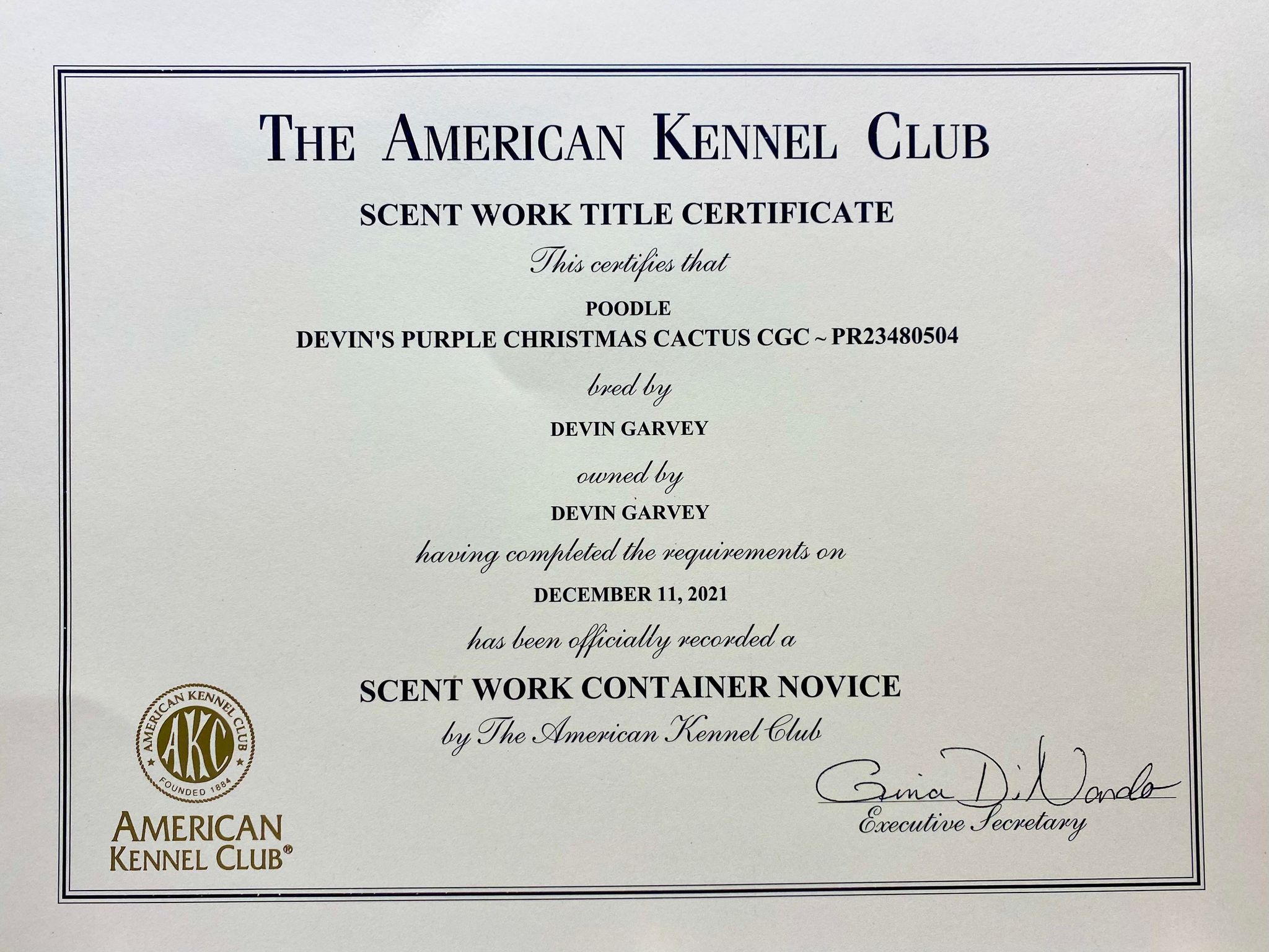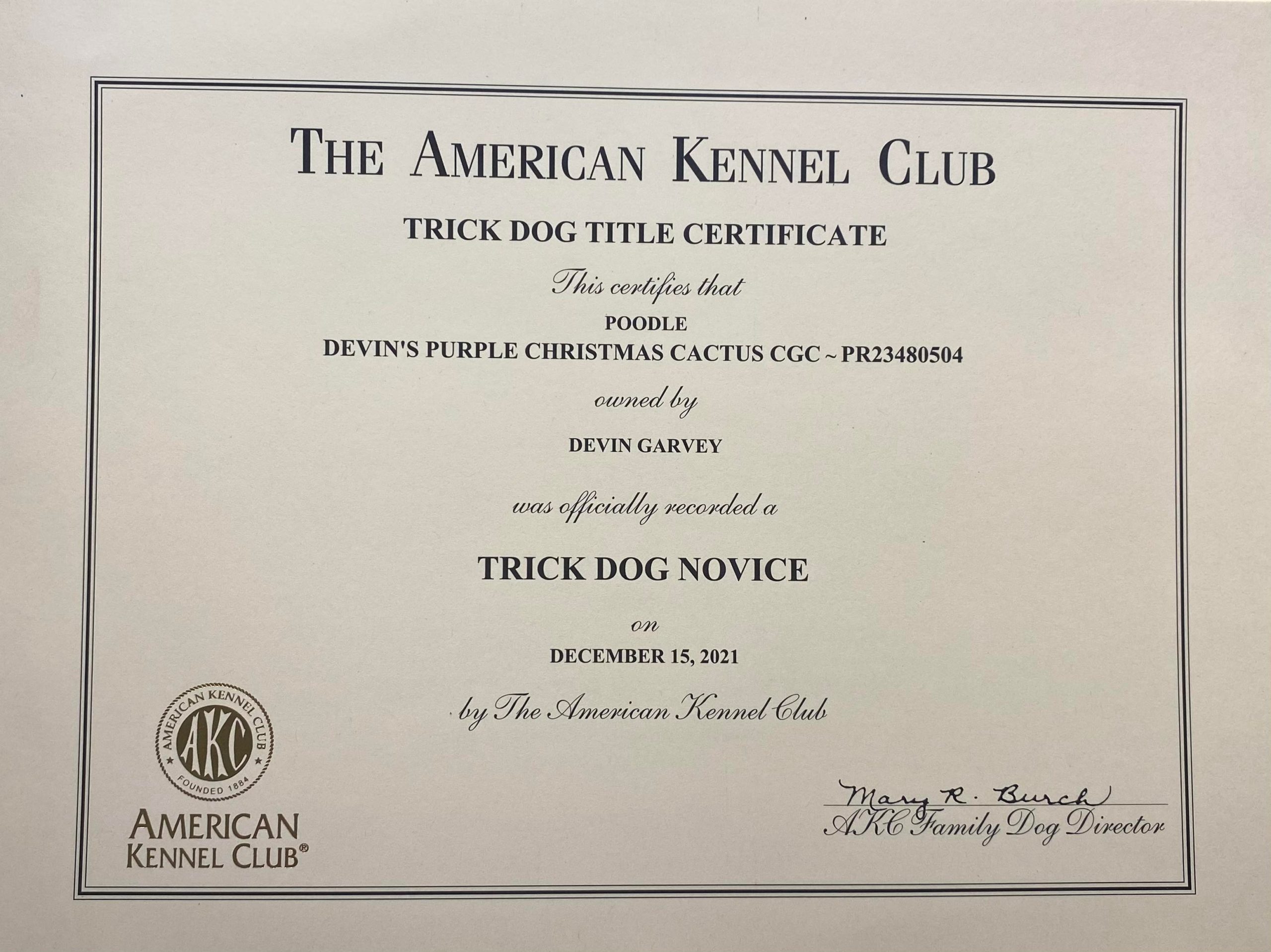- 12/15/21 Omaha NE, GoDogs, AKC Trick Dog Novice (TKN)