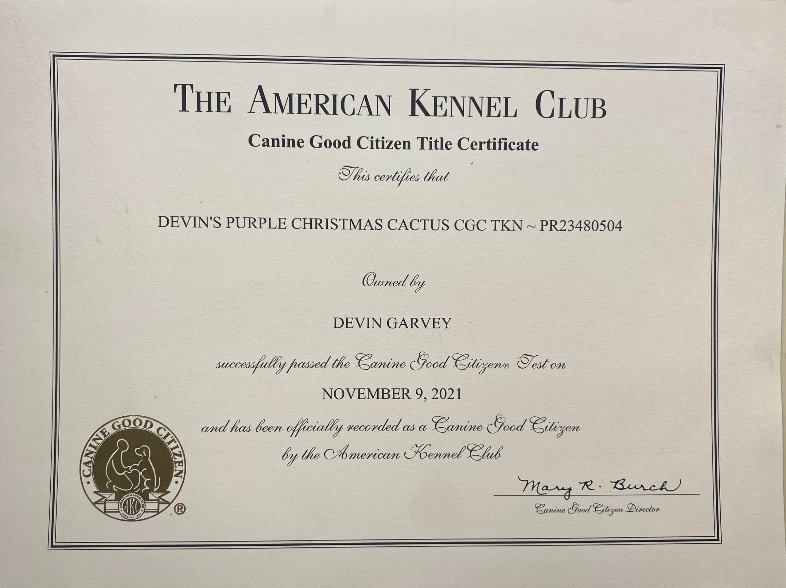 - 11/12/21 Omaha NE, Companion Dog Club, AKC Canine Good Citizen (CGC)